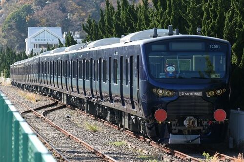 12月18日(火)の撮影です 神武寺駅で 相鉄 12000系(12101F)10両 もう1枚 10号車 「12001」 先頭部 もう1枚 もう1枚 車番 「12001」 特殊貨物検査票 「甲111-112」「厚木駅(かしわ台駅) 逗子駅」 金沢新道踏切に移動して 甲種輸送 DE10 1749+相鉄12000系(1210…