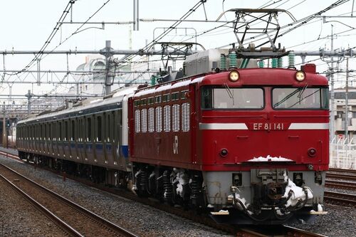 1月29日(土)の撮影です 南浦和-蕨で AM出場配給 EF81 141+E531系(K463)5両 (10:58) 以上です 鉄道コムに参加しています。