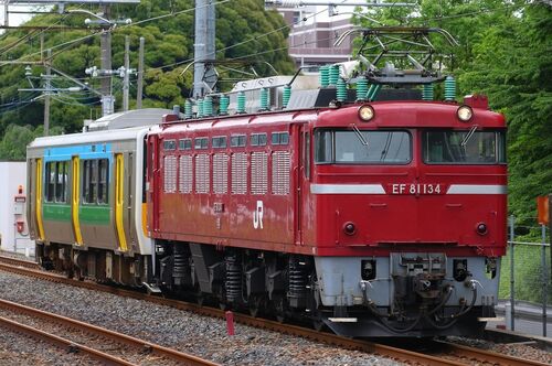 6月15日(木)の撮影です 東浦和付近で KY入場配給 EF81 134+キハE130-110 (12:11) 蕨-南浦和に移動して OM入場(回8895M) E259系(Ne007)6両 (13:52) 以上です 鉄道コムに参加しています。