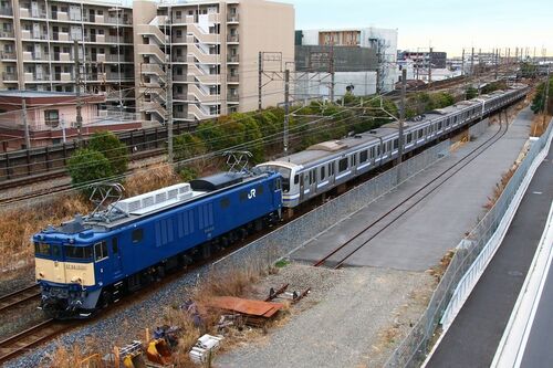 2月1日(木)の撮影です 鶴見-新鶴見で 長野配給 EF64 1030+E217系(Y-134+Y-108)8両 (13:06) 鶴見-八丁畷に移動して 甲種輸送 DD200-7+E531系(クハE531-17)1両 (14:50) 鶴見川に移動して 新津配給 EF81 140+E235系1000番台(J-29)4両 (15:35) E235系1000番…